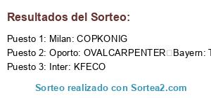 Lista de participantes: Oporto: OVALCARPENTER Bayern: TONINOCARLA, Milan: COPKONIG, Inter: KFECO.