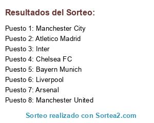 Lista de participantes: Bayern Munich, Manchester City, Chelsea FC, Manchester United, Inter, Atletico Madrid, Arsenal, Liverpool.