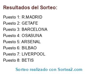 Lista de participantes: BETIS, OSASUNA, BILBAO, R.MADRID, LIVERPOOL, ARSENAL, BARCELONA, GETAFE.