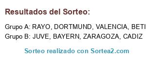 Lista de participantes: BETIS, JUVE, VALENCIA, DORTMUND, ZARAGOZA, BAYERN, RAYO, CADIZ.