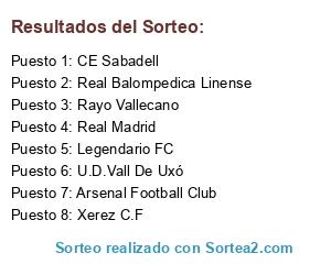Lista de participantes: CE Sabadell, Real Madrid, Real Balompedica Linense, Legendario FC, Arsenal Football Club, Rayo Vallecano, Xerez C.F, U.D.Vall De Uxó.