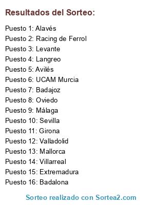Lista de participantes: Levante, Mallorca, Sevilla, Málaga, Badalona, Racing de Ferrol, Valladolid, Oviedo, Alavés, Girona, Badajoz, UCAM Murcia, Extremadura, Langreo, Villarreal, Avilés.