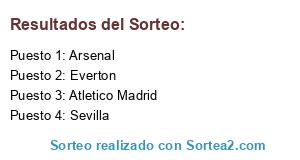 Lista de participantes: Everton, Atletico Madrid, Arsenal , Sevilla.