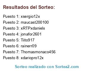 Lista de participantes: maucast200100, Thomasmonaco456, jonafor2601, rainerr09, Tiito917, xsergio12x, xdariopro12x, xRTPxdanielx.