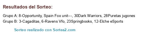 Lista de participantes: 1-Green Team, 2-TSK eSports, 3-Cagaditas, 4-Los de marras, 5-Merida, 6-Ravens Vfo, -7Te fundo, 8-Opportunity, -9Reus(Avellana mecanica), 10_Art of touch, -11Team Galaxy, 12-Elche eSports, 13Eleven Wizards, 14Badajoz, 15Constanti, 16Nene club de futbol, 17Vendaball, 17Xerez eSports, 19Team eternal VFO, 20Panthers eSports, 21ML 55 SKULLS, 22Lemon Spaze, 23Springbooks, 24Ceuta eSports, 25Gentlmen, 26Tres sesenta, 27Slava, 28Puretas jugones, 29Rcd Legends, 30Dark Warriors, 31Team AQMA, 32Spartans, Villafortuna---, Atheans, Areucas united, Mayango----->, Wolves city----, Galacticos----->, Spain Fox unit---, Widaco vfo.