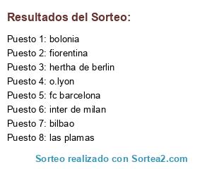 Lista de participantes: bilbao, o.lyon, fc barcelona, fiorentina, las plamas, hertha de berlin, bolonia, inter de milan.