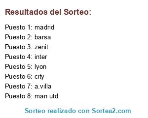 Lista de participantes: inter, man utd, barsa, madrid, zenit, city, a.villa, lyon.