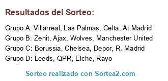 Lista de participantes: At.Madrid, Borussia, R. Madrid, Las Palmas, QPR, Manchester United, Villarreal, Ajax, Rayo, Depor, Leeds, Wolves, Chelsea, Elche, Celta, Zenit.