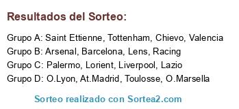 Lista de participantes: Tottenham, Racing, Lorient, Barcelona, Saint Ettienne, O.Lyon, O.Marsella, Arsenal, Lazio, Toulosse, Liverpool, Lens, Valencia, At.Madrid, Palermo, Chievo.