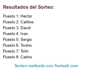 Lista de participantes: Hector, Ivan, Tolin, Tonino, David, Sergio, Carlitos, Carlos.