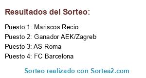 Lista de participantes: AS Roma, Mariscos Recio, FC Barcelona, Ganador AEK/Zagreb.