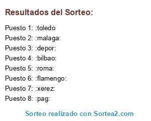 Lista de participantes: :flamengo:, :bilbao:, :pag:, :malaga:, :toledo, :depor:, :roma:, :xerez:.