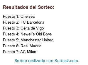 Lista de participantes: Real Madrid, Chelsea, Celta de Vigo, FC Barcelona, Manchester United, AC Milan, Newell's Old Boys.