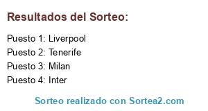 Lista de participantes: Liverpool, Milan, Inter, Tenerife.