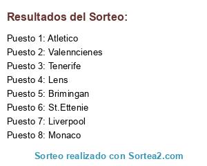 Lista de participantes: Atletico, Monaco, Liverpool, St.Ettenie, Tenerife, Valenncienes, Lens, Brimingan.