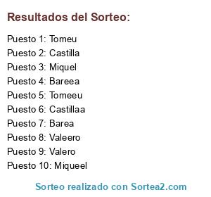 Lista de participantes: Tomeeu, Valeero, Bareea, Castillaa, Miqueel, Castilla, Miquel, Barea, Tomeu, Valero.
