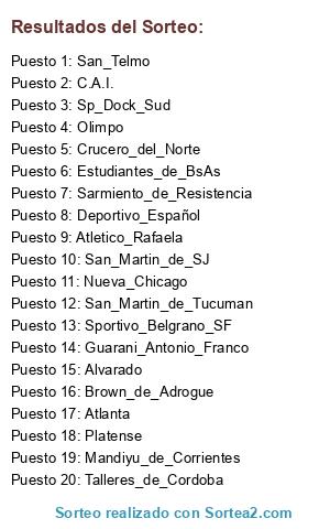 Lista de participantes: Alvarado, Olimpo, San_Martin_de_Tucuman, C.A.I., Talleres_de_Cordoba, Sportivo_Belgrano_SF, Estudiantes_de_BsAs, San_Telmo, Atlanta, Brown_de_Adrogue, San_Martin_de_SJ, Sp_Dock_Sud, Guarani_Antonio_Franco, Sarmiento_de_Resistencia, Deportivo_Español, Platense, Mandiyu_de_Corrientes, Crucero_del_Norte, Atletico_Rafaela, Nueva_Chicago.