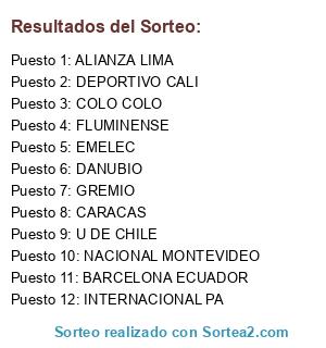 Lista de participantes: ALIANZA LIMA, BARCELONA ECUADOR, CARACAS, DANUBIO, DEPORTIVO CALI, FLUMINENSE, COLO COLO, NACIONAL MONTEVIDEO, GREMIO, INTERNACIONAL PA, EMELEC, U DE CHILE.