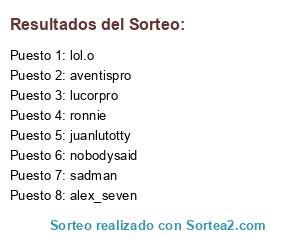 Lista de participantes: alex_seven, lol.o, aventispro, juanlutotty, lucorpro, ronnie, sadman, nobodysaid.