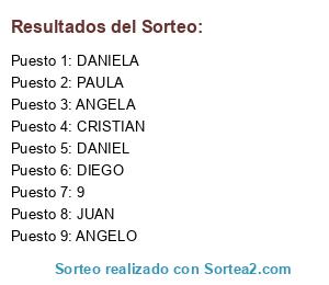 Lista de participantes: ANGELA, ANGELO, CRISTIAN, DANIEL, DANIELA, DIEGO, JUAN, PAULA, 9.