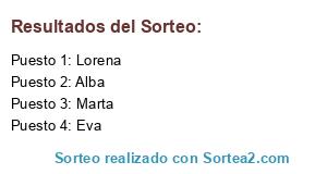 Lista de participantes: Eva, Lorena, Marta, Alba.
