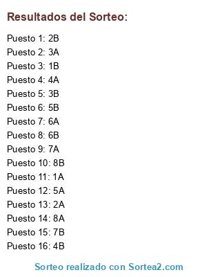 Lista de participantes: 1A, 2A, 3A, 4A, 5A, 6A, 7A, 8A, 1B, 2B, 3B, 4B, 5B, 6B, 7B, 8B.