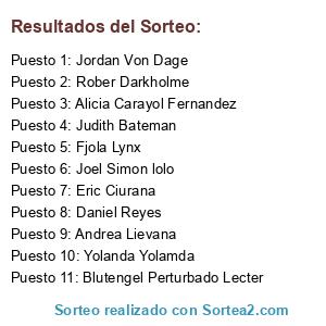 Lista de participantes: Rober Darkholme(6 participaciones), Blutengel Perturbado Lecter, Alicia Carayol Fernandez(4 participaciones), Fjola Lynx(6 participaciones), Judith Bateman(2 participaciones), Andrea Lievana, Daniel Reyes, Eric Ciurana(2 participaciones), Jordan Von Dage, Yolanda Yolamda, Joel Simon lolo.