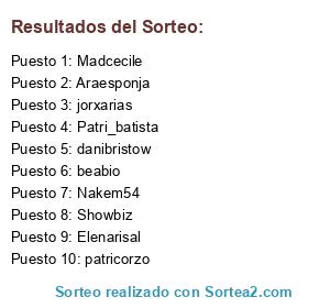 Lista de participantes: Blodi_meri, Mydeebennet, Millaresadrian, Gonzalezbcn23, Mireyaalmeria, Elenjs, Mjguilleen, Ido__ido, Madcecile, Garciaburguillo, Elenarisal, Cris_piera, Whippetina, Piopiooo, Miniblanch, adrianaQ_G, zupercriss_nina, danibristow, juangomezzurita, iria_HH, m_ogerbo, sashimiblues, yosoyainhoafr, casiopeaytiempo, patricorzo, mrwonderful_, prgamero, beatriztolmo, jorxarias, dmyuv, beabio, artysmedia, gema_martisoler, zentalau, lapendeja_, iseta_gonzalez, andreaaps, CHalime_Carles, Rocpadilla, Olieteworldblog, Sinremediooo, Ariamsita, Araesponja, L_aur_a_, Showbiz, Es_elnerdo, Wondersierra, Anna_gorse, Eisenofmine, Patri_batista, Nurieteme, Carmengallard, Albacp_13, Espe_sojo, Nakem54, Juaniglesias81, Aljm86, Cesc_vilanova, Atodoconfetti, Mme_noemie, Gmoret, Addictsmile, Hilosdetich, Inspirante_est, Icanoc12, Rbndf, Booktrendygirl, eduardbertran.