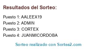 Lista de participantes: AALEEX19, CORTEX, ADMIN, JUANMICORDOBA.