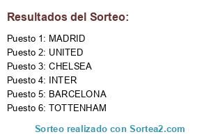 Lista de participantes: UNITED, TOTTENHAM, BARCELONA, CHELSEA, MADRID, INTER.