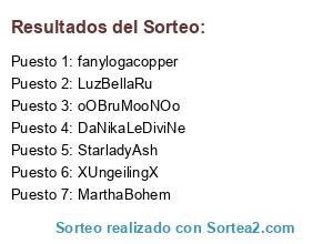 Lista de participantes: lViiolet, DaNikaLeDiviNe, LolitaLeDiviNe, VampDarknessdeAngels, YamilomarCorleone, SAYAGEIST, PrincessBiankita, CarlaTerranova, dichan63, SABRINA90320, Yuvelitha, diaairis, SIRENALY, fanylogacopper, MarthaBohem, ivenatyh, lLettzl, SolitariaCullen, AkashaVanIveren, lD3vi, ladymarianita, LuzBellaRu, 0o0JULIETA0o0, xXAndreaSolitariaXx, Saory, llAmumikyll, Alexiel25, oOoDoutzenKroesoOo, llEstefaniaall, XUngeilingX, Ylgara, oOIraniilLuthorOo, kritf, StarladyAsh, oOBruMooNOo.