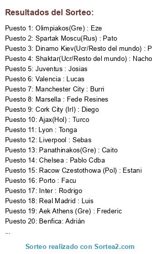 - GRUPO A : Spartak Moscu(Rus) : Pato