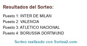 Lista de participantes: VALENCIA, INTER DE MILAN, ATLETICO NACIONAL, BORUSSIA DORTMUND.