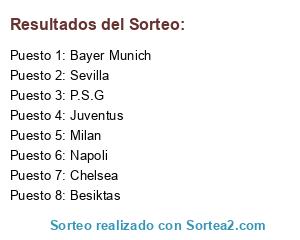Lista de participantes: Bayer Munich, Juventus, Besiktas, P.S.G, Napoli, Milan, Sevilla, Chelsea.