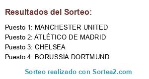 Lista de participantes: ATLÉTICO DE MADRID, MANCHESTER UNITED, BORUSSIA DORTMUND, CHELSEA.