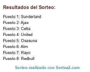 Lista de participantes: Rayo, United, Ajax, Atm, Osasuna, Celta, Sunderland, Redbull.