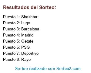 Lista de participantes: Shakhtar, Rayo, Madrid, Deportivo, Getafe, Lugo, PSG, Barcelona.