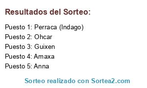 Lista de participantes: Amaxa, Anna, Guixen, Ohcar, Perraca (Indago).