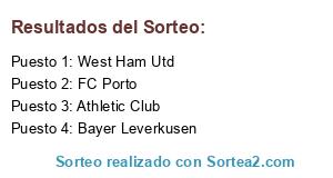Lista de participantes: Athletic Club, Bayer Leverkusen, FC Porto, West Ham Utd.