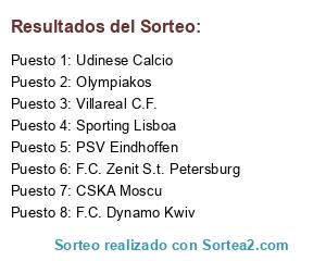 Lista de participantes: Udinese Calcio, Villareal C.F., PSV Eindhoffen, Sporting Lisboa, CSKA Moscu, F.C. Zenit S.t. Petersburg, F.C. Dynamo Kwiv, Olympiakos.