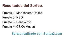 Lista de participantes: Manchester United, CSKA Moscú, Benevento, PSG.