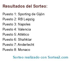 Lista de participantes: Anderlecht, RB Leipzig, Valencia, Sporting de Gijón, Monaco, Atlético, Napoles, Shahktar.