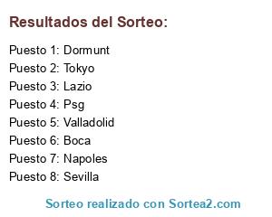 Lista de participantes: Valladolid, Tokyo, Sevilla, Psg, Napoles, Boca, Dormunt, Lazio.