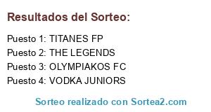 Lista de participantes: VODKA JUNIORS, OLYMPIAKOS FC, THE LEGENDS, TITANES FP.