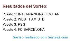 Lista de participantes: INTERNAZIONALE MILAN, FC BARCELONA, PSG, WEST HAM UTD.