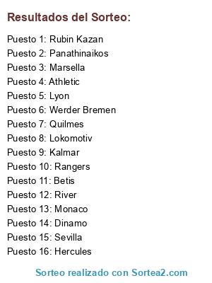Lista de participantes: Werder Bremen, Hercules, River, Panathinaikos, Rubin Kazan, Quilmes, Athletic, Kalmar, Lokomotiv, Marsella, Rangers, Sevilla, Monaco, Betis, Dinamo, Lyon.
