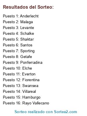 Lista de participantes: Everton, Hamburgo, Sporting, Levante, Swansea, Rayo Vallecano, Villareal, Malaga, Shaktar, Getafe, Elche, Santos, Schalke, Anderlecht, Fiorentina, Ponferradina.