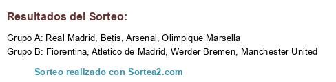 Lista de participantes: Benfica, Borussia Dortmund, REAL MADRID, M. UNITED, BAYER, SANT PAULI, CADIZ, TOTTENHAM.