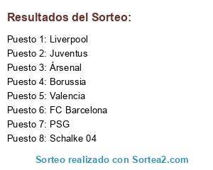 Lista de participantes: FC Barcelona, Liverpool, Valencia, Ársenal, Juventus, Borussia, Schalke 04, PSG.