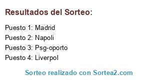Lista de participantes: Liverpol, Napoli, Psg-oporto, Madrid.